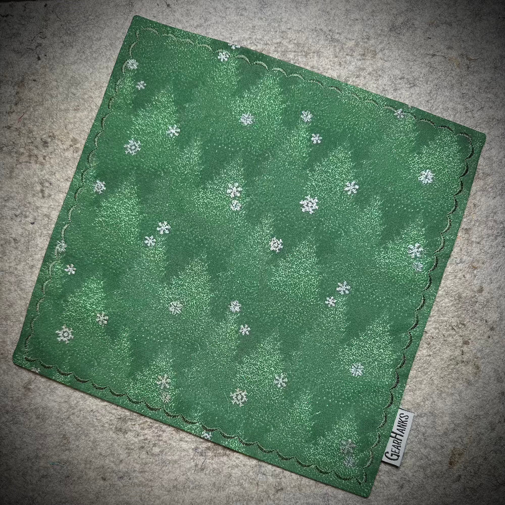When you are done using your hank, it will fold up nicely in your pocket (or purse) without any bulk.